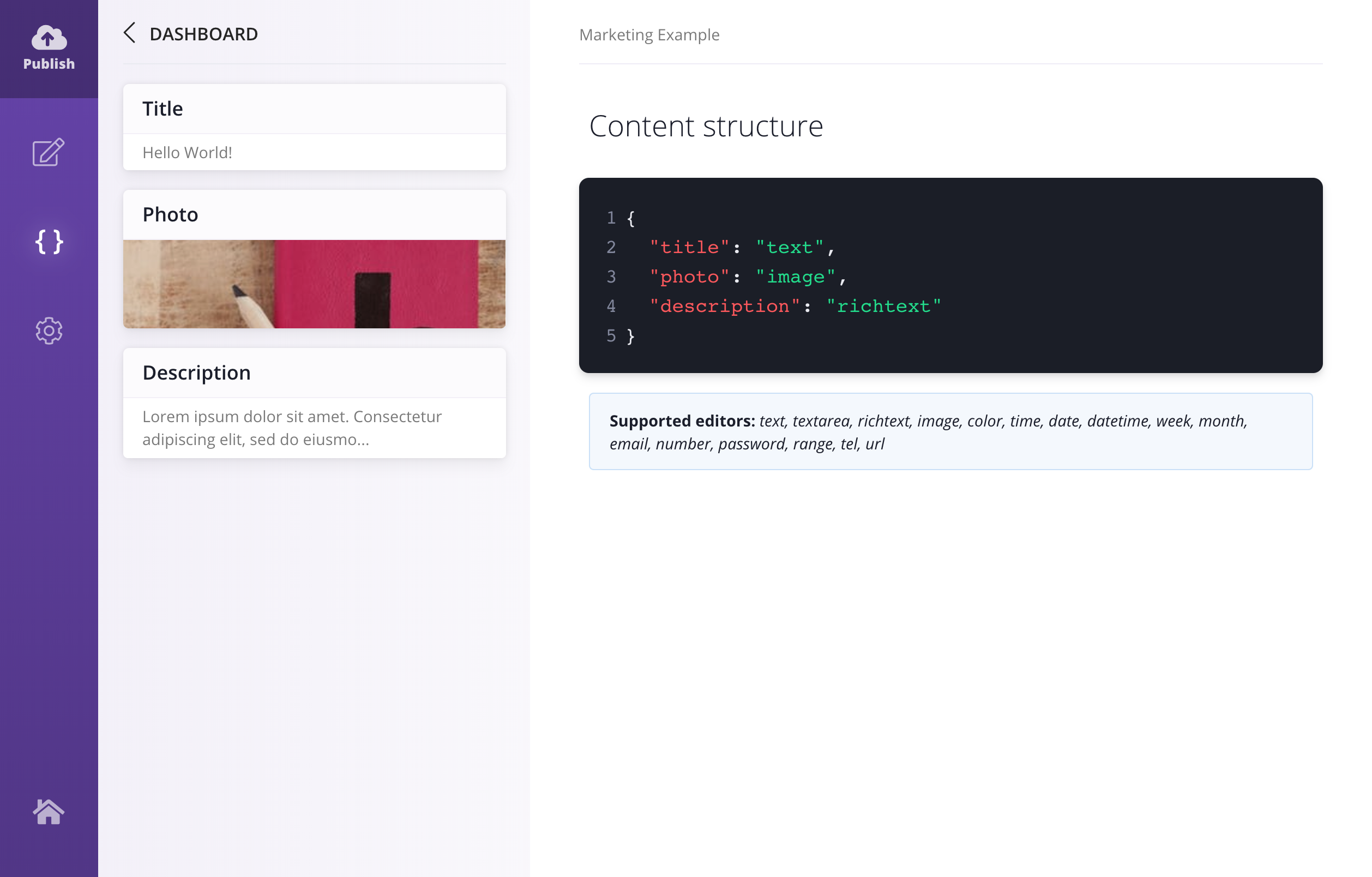Editlayer is a headless CMS that operates in a cloud. The content is saved to a JSON file.